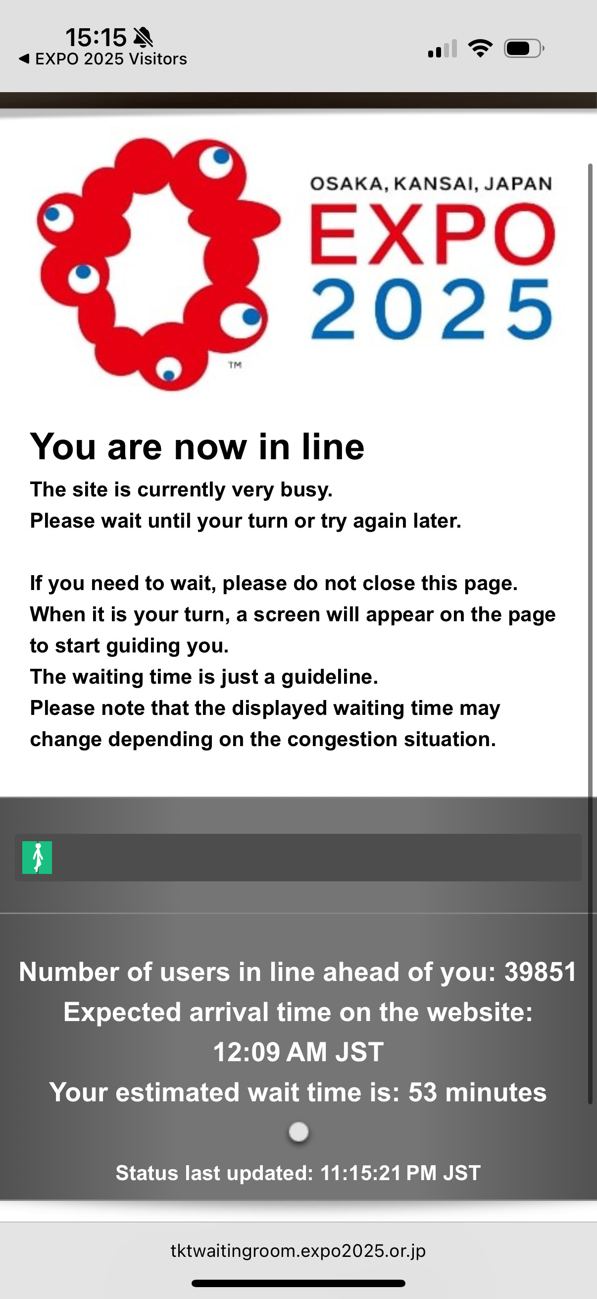 Even after surviving the ticket purchase ordeal and finally arriving at the Expo, the digital nightmare continues. Most visitors only secure reservations for 2 pavilions through the lottery system and must compete for additional pavilion slots while on-site. This requires constantly refreshing the website (not the app) to catch last-minute openings. The mobile web experience creates additional frustrations: